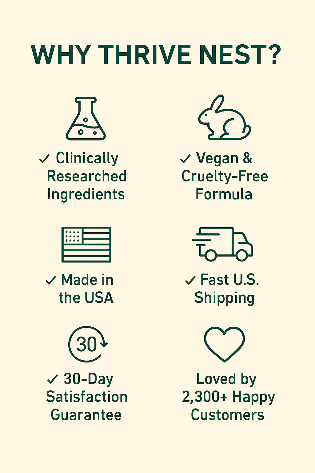 At Thrive Nest, we offer premium wellness, skincare, and hair care products designed to help you feel confident, healthy, and radiant, inside and out.